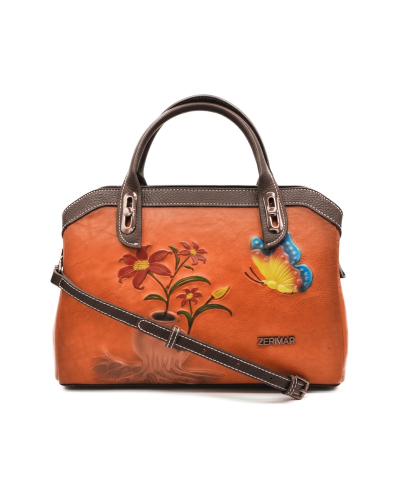 Engraved leather bag with double handle 30x20x9 cm ABRIL