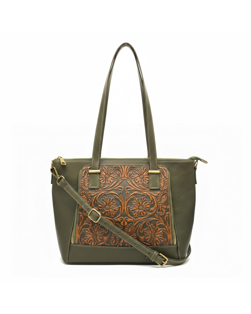 Engraved leather bag with double handle 30x24x11 cm GIARDE