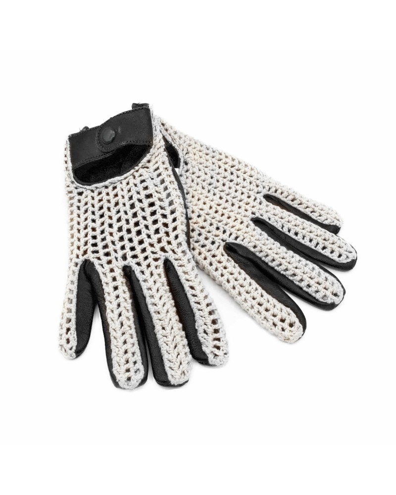 Leather gloves with knit for drivers