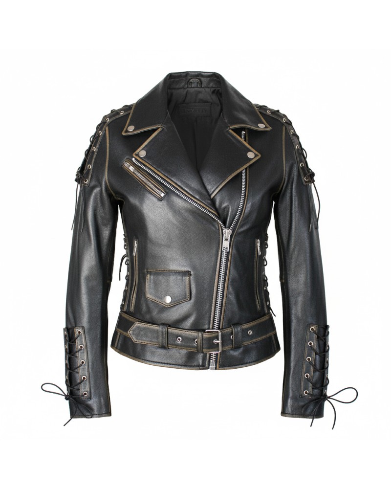 MODERN DESIGN: Long-sleeved Natural Leather Jacket. Perfect to combine with casual and party clothes.