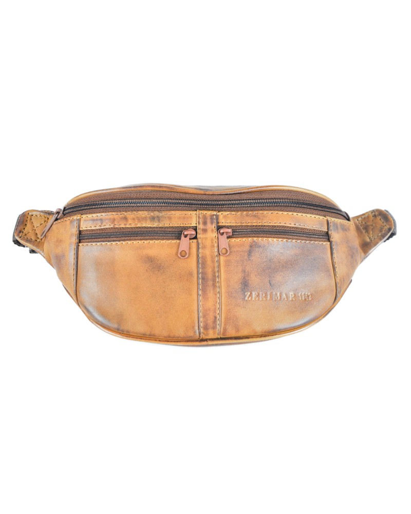 Leather waist bag with several compartments 30x11x7 cm