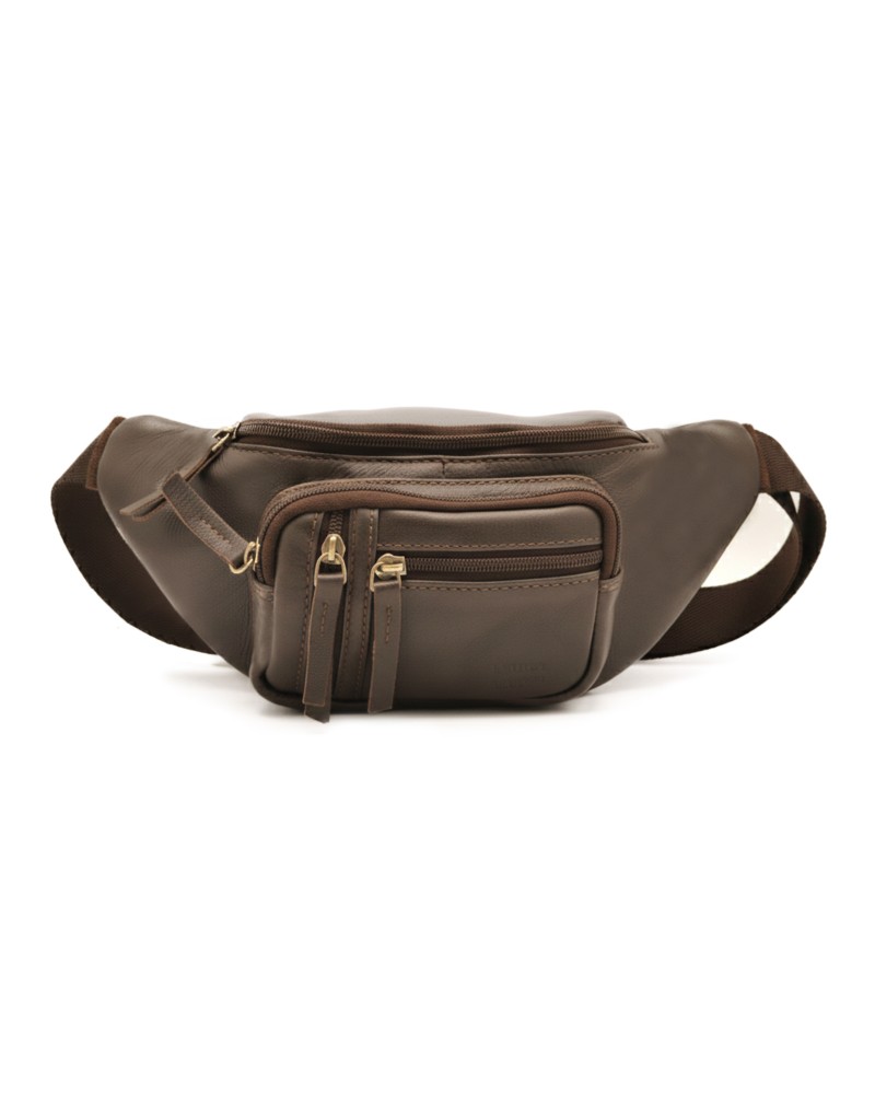 Leather waist bag with several compartments 26x12x6 cm